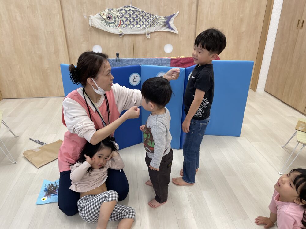 段々とウロコが元通りになっていくこいのぼりさんを見て 「こいのぼりさん、いたいいたい、ないないね」など、こどもたちの優しい姿があちこちで見られました(*^-^*)★