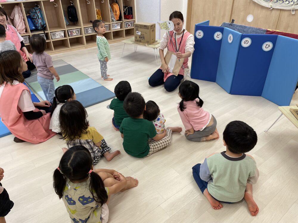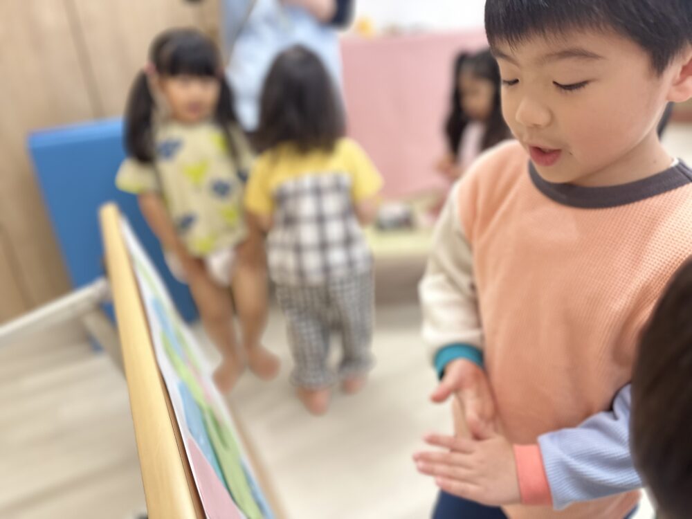 とお話をしました(*^-^*)🎏こいのぼりのお話をした後は、こいのぼりのペープサートを見ました。