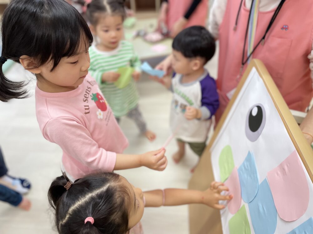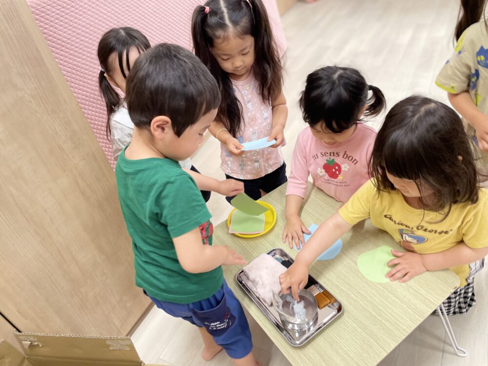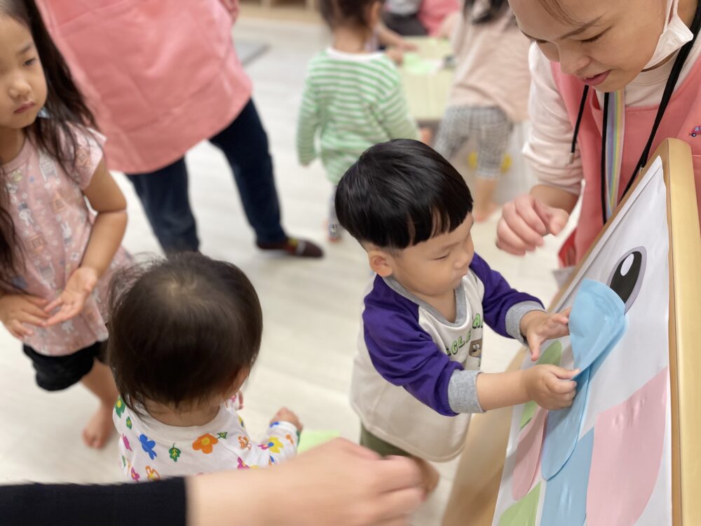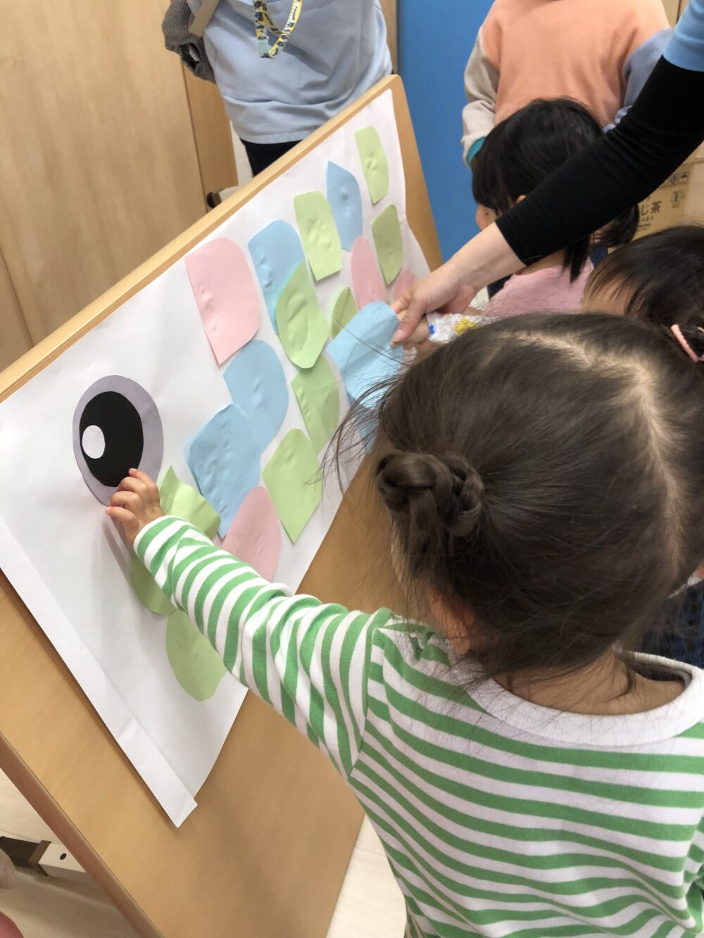 普段「でんぷんのり」の感触が苦手なお友だちも、今日は自分から進んで「こいのぼりさんの手当て」に夢中でした。
