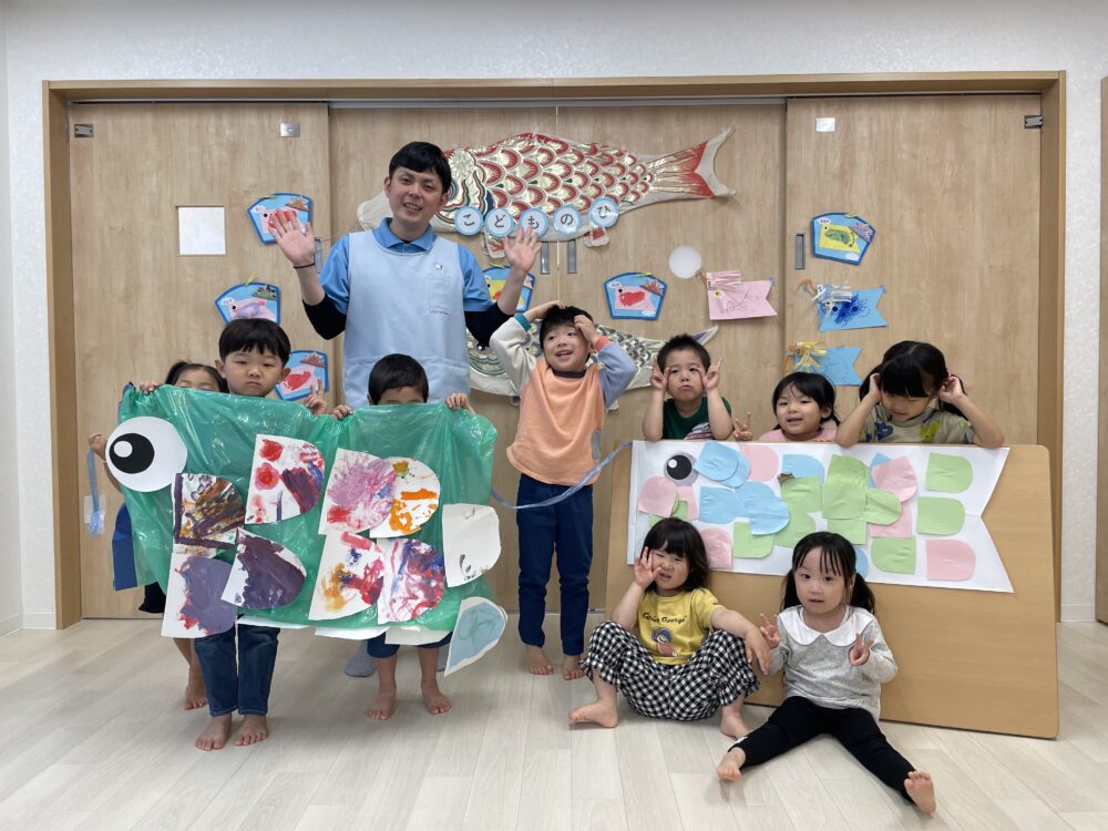 今日はこどもの日のお集まりをしました★頑張って製作した各クラスのとってもかわいいこいのぼり🎏