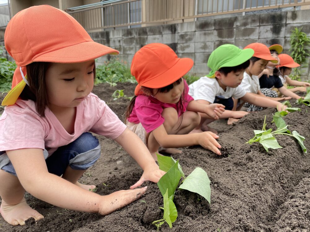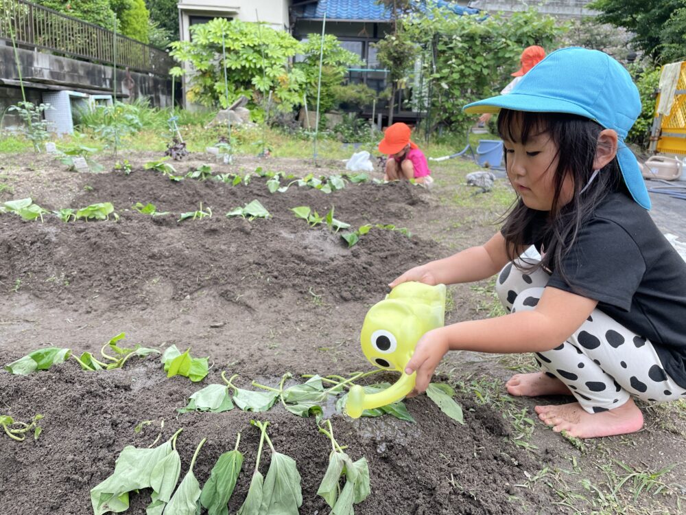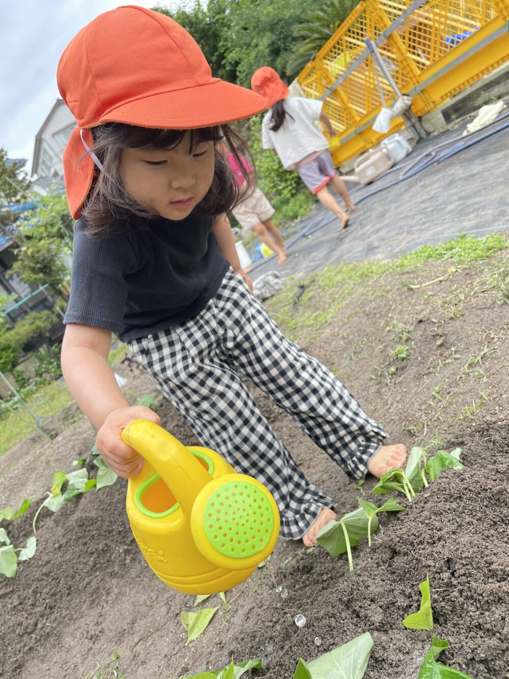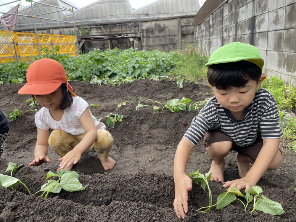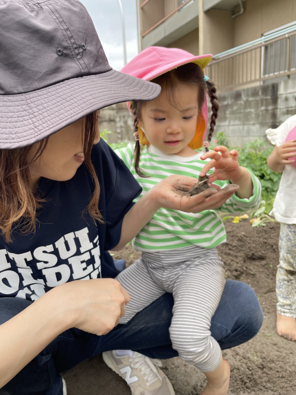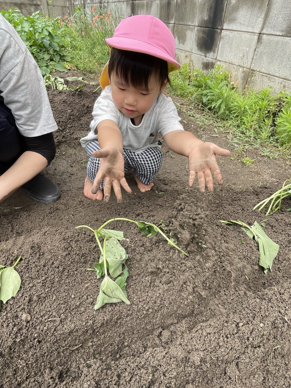 ほしぐみは保育者が苗を植えたところへ土のお布団をかぶせてくれました✨