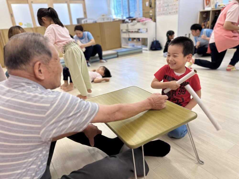 「○○ちゃんのおじいちゃん、おばあちゃん」というより、みなさまが「みんなのおじいちゃん、おばあちゃん」となってくださり、こどもたちも大人たちもみんなで大笑いしながら楽しむことができました☺