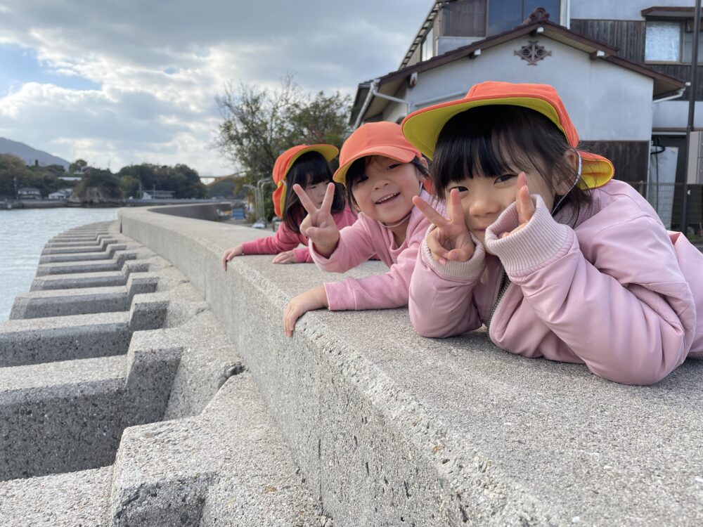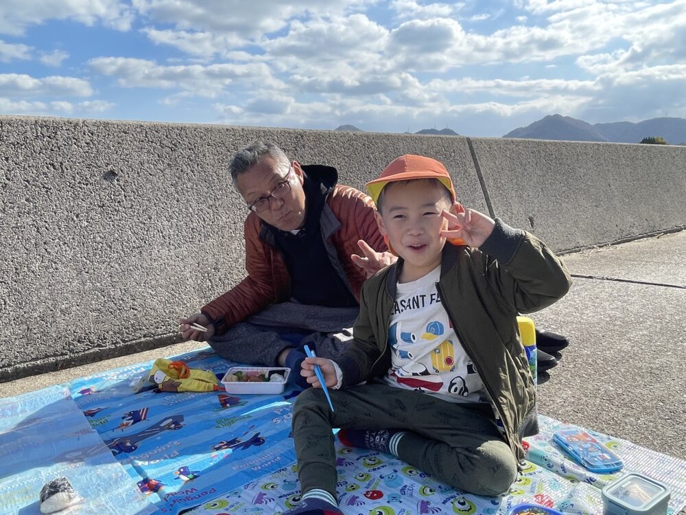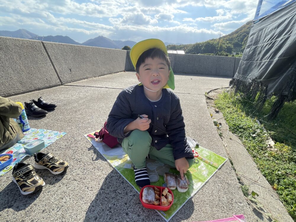 みかん狩りやエサやりを楽しんだ後は、海辺でお弁当タイム!!