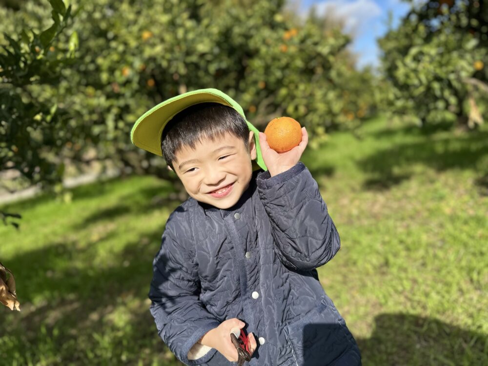 おいしいみかんの見分け方を教えてもらい、さっそくみかん狩りへ🍊