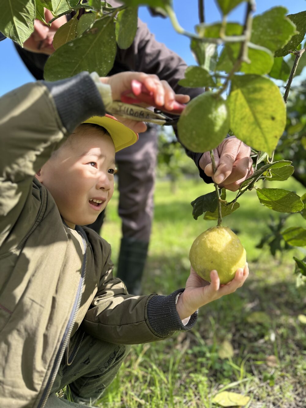はさみを上手に使いながら、自分が食べたいと思ったみかんを採りました!