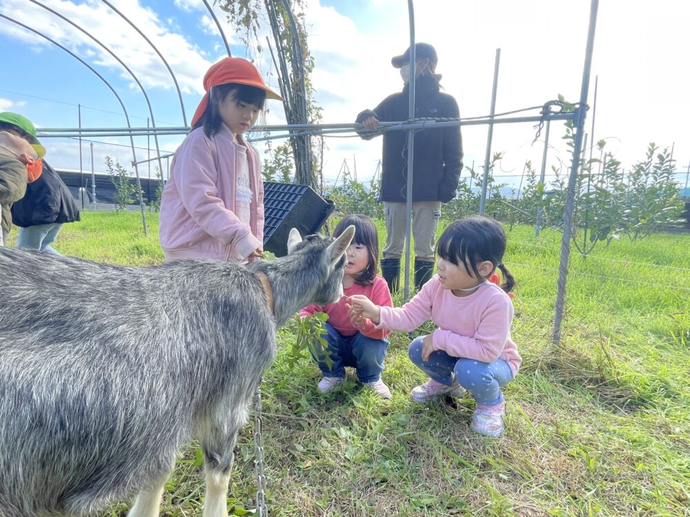 ヤギを初めて見る子もいましたが、怖がることなく撫でたりエサやりで仲良くなっている子もいました😊