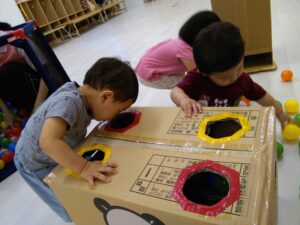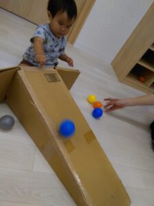 ボールを穴に入れて「どこにいったー?」と顔をのぞかせる姿がとても可愛いかったです♪
