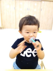 natural保育園では小さい頃から歯磨きに慣れ、口の中が清潔になるよう給食後に毎日歯磨きをしています(*^^*)
