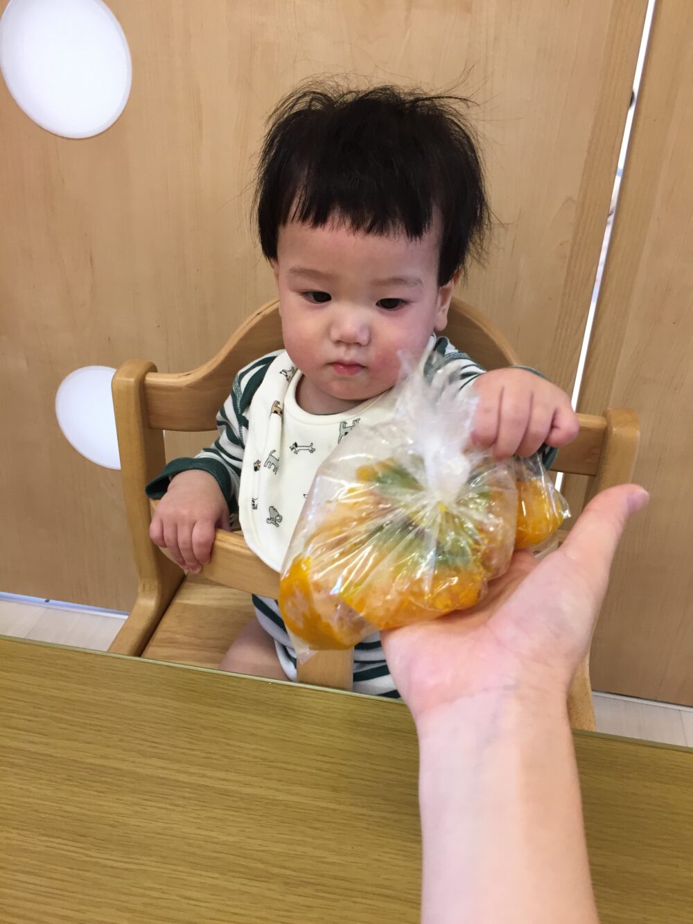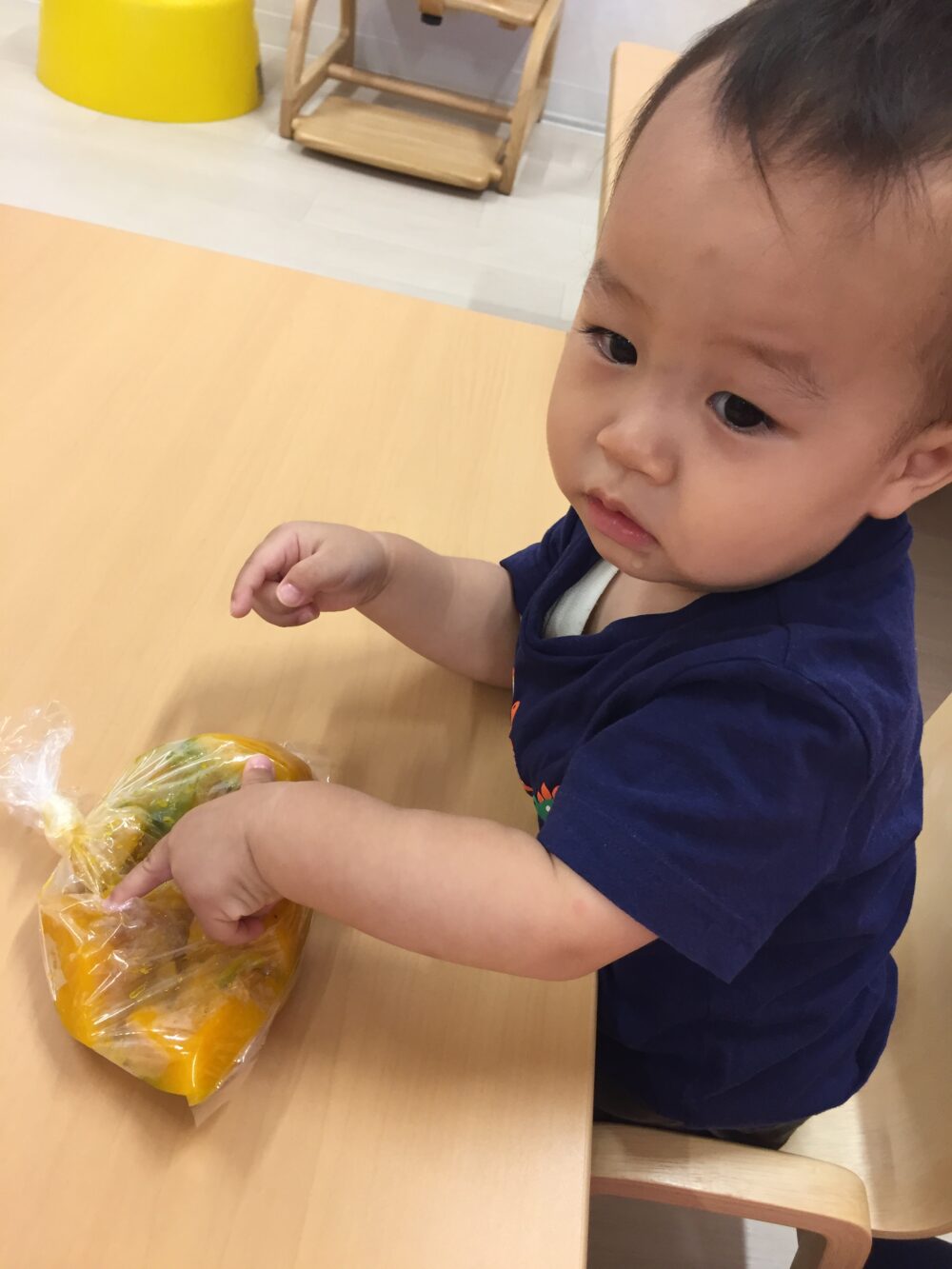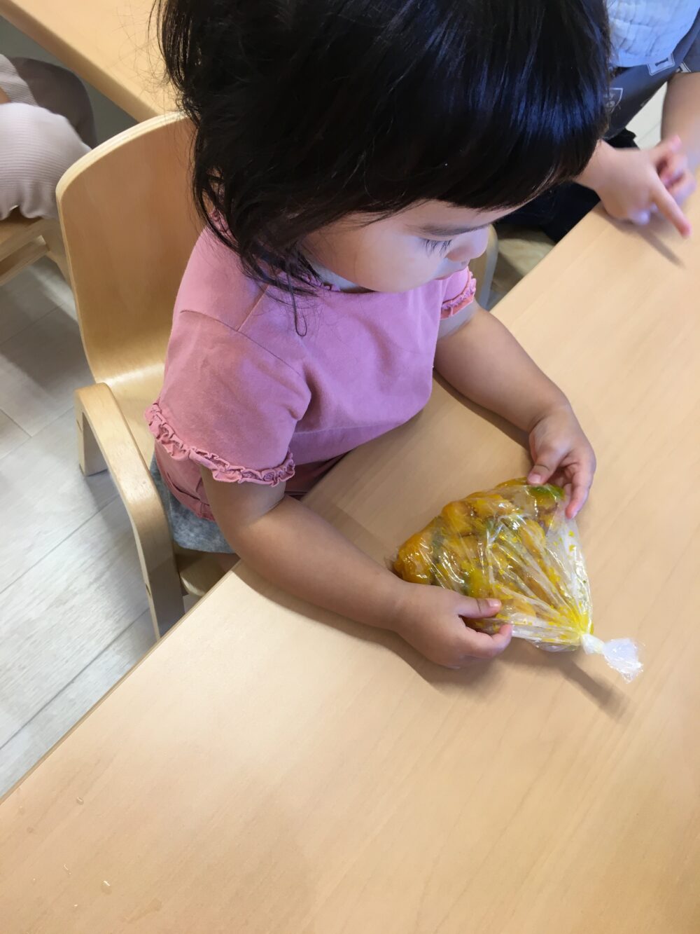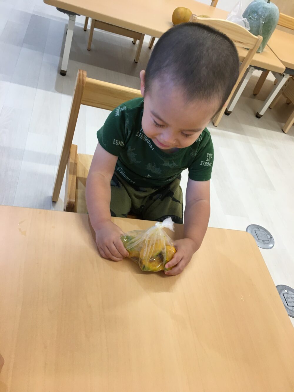 朝元気よく登園してきた子から順にかぼちゃを触ってみました(^▽^)