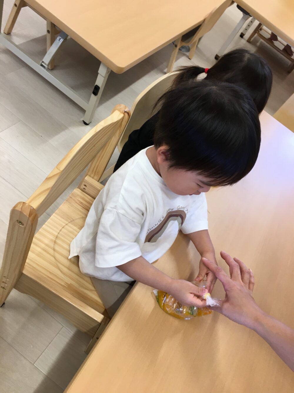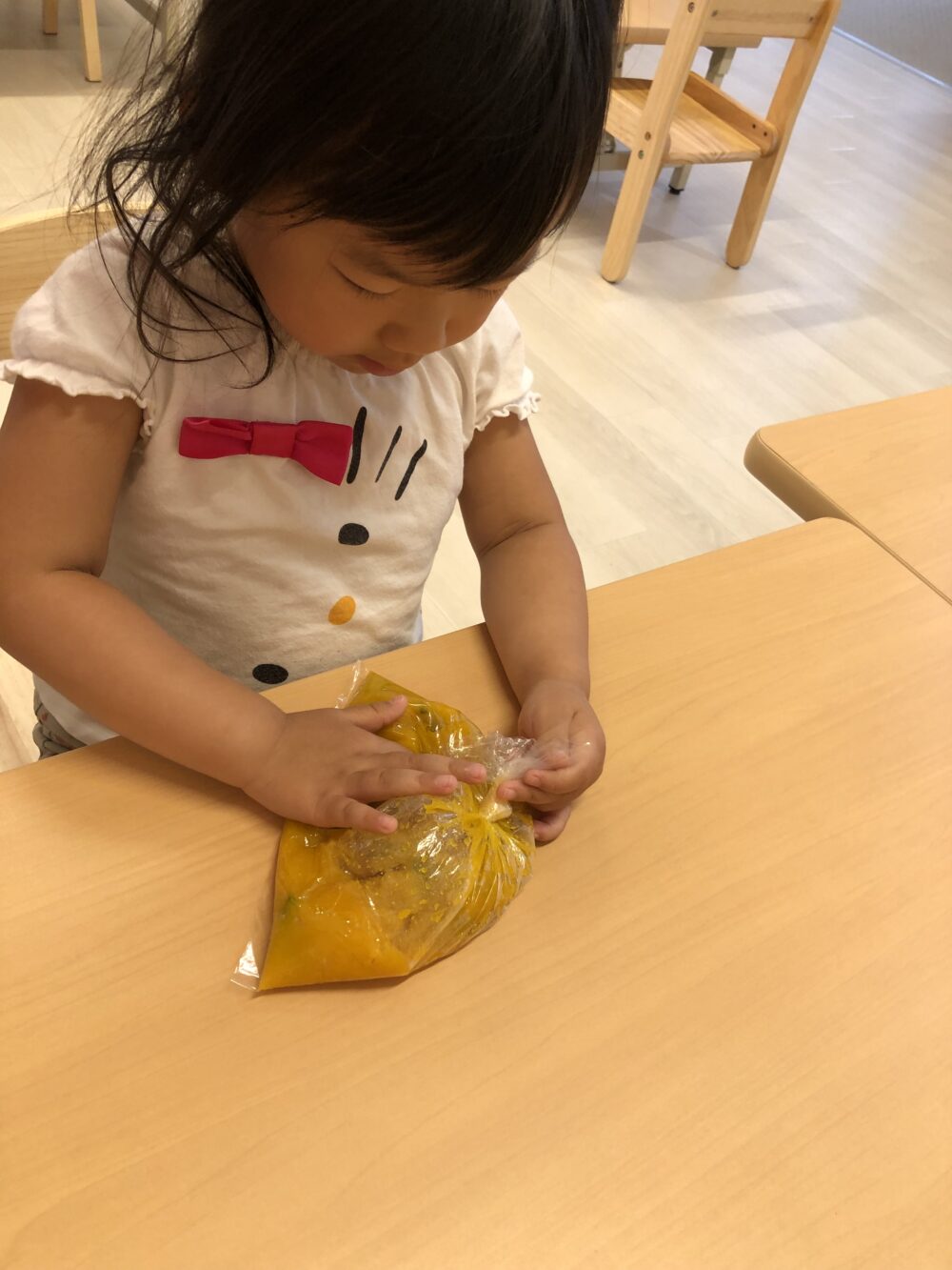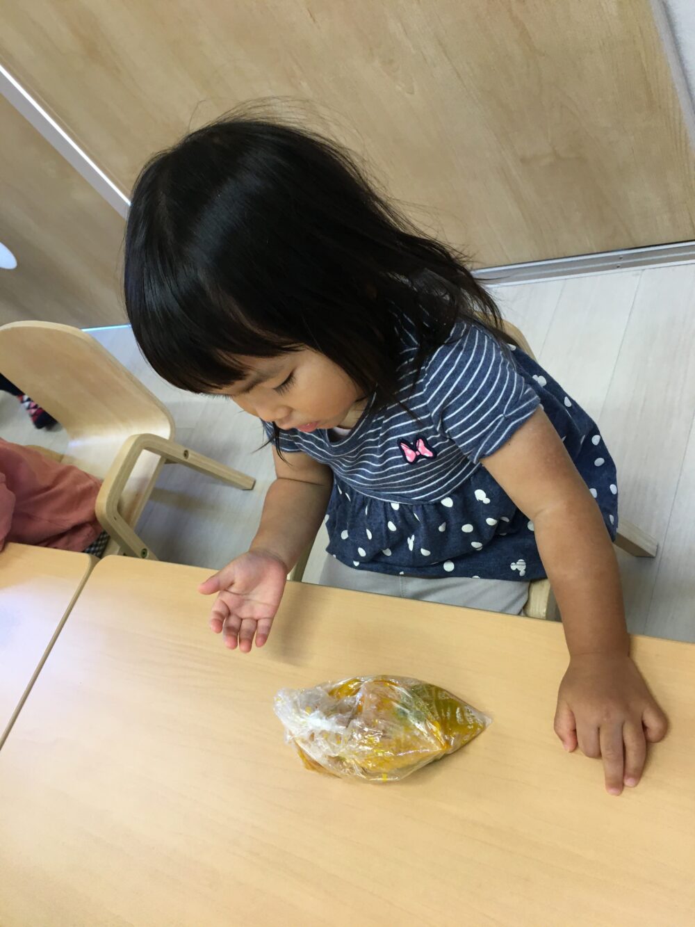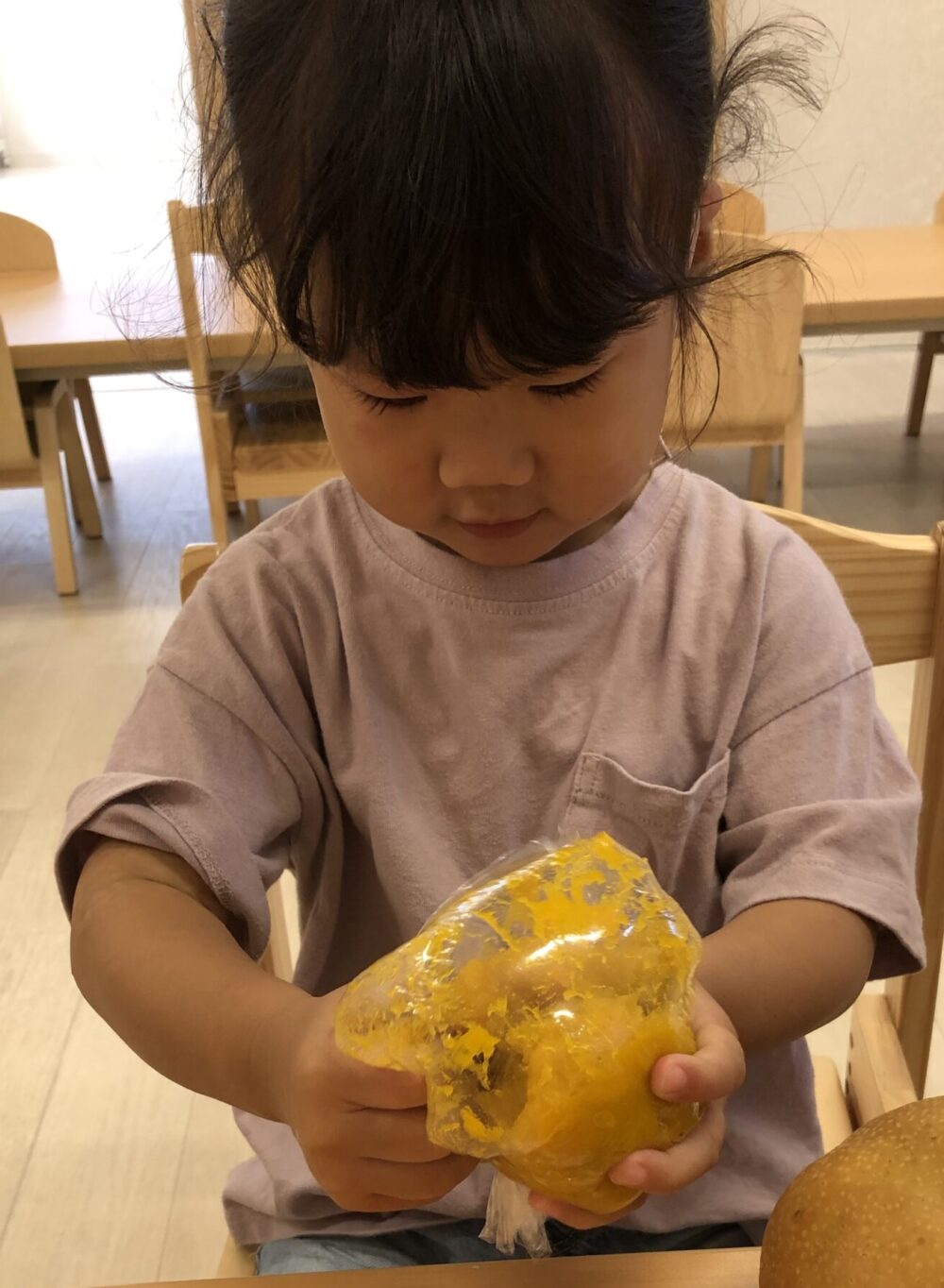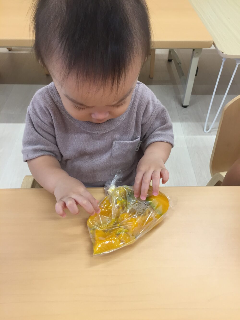 朝元気よく登園してきた子から順にかぼちゃを触ってみました(^▽^)