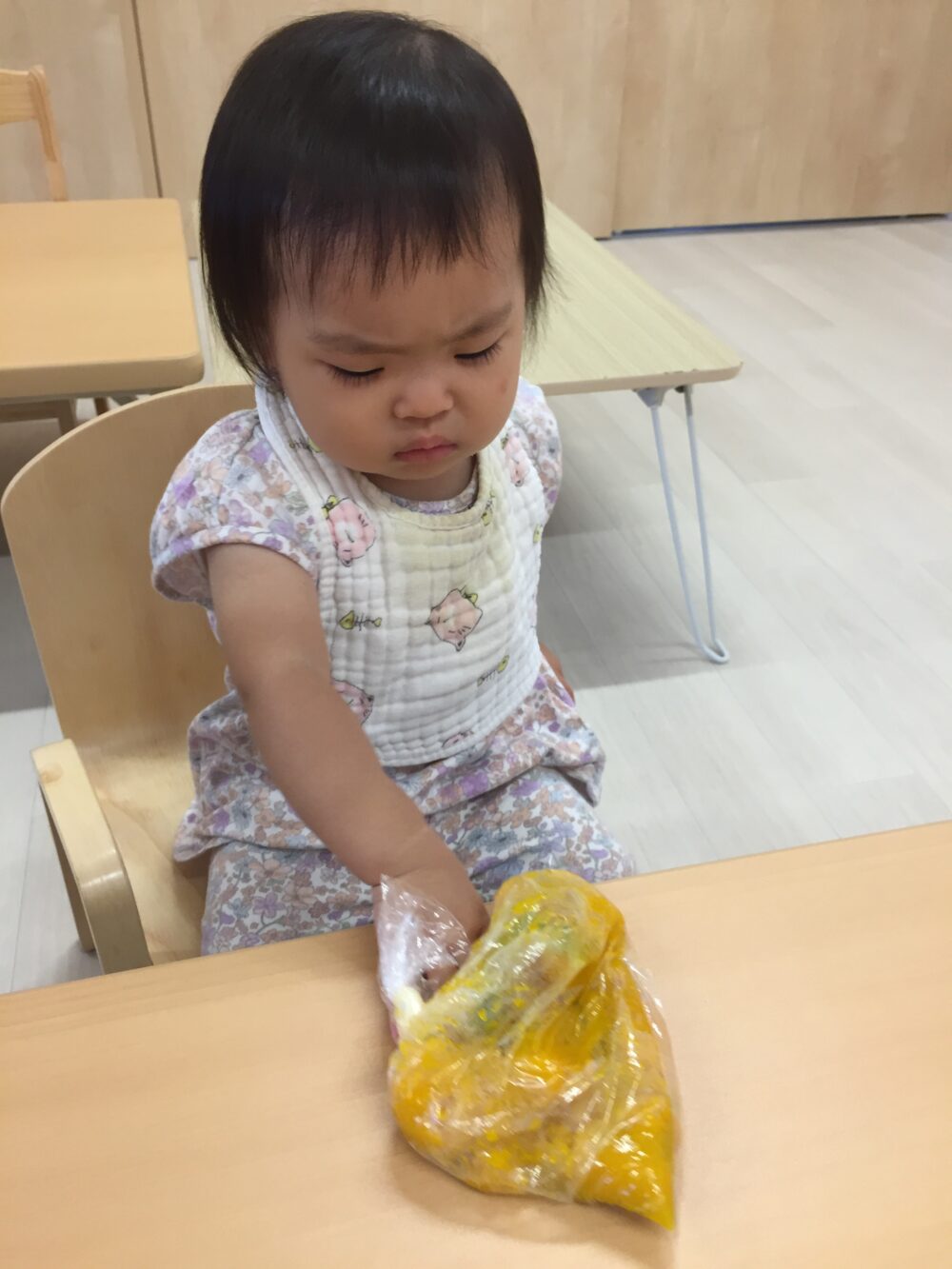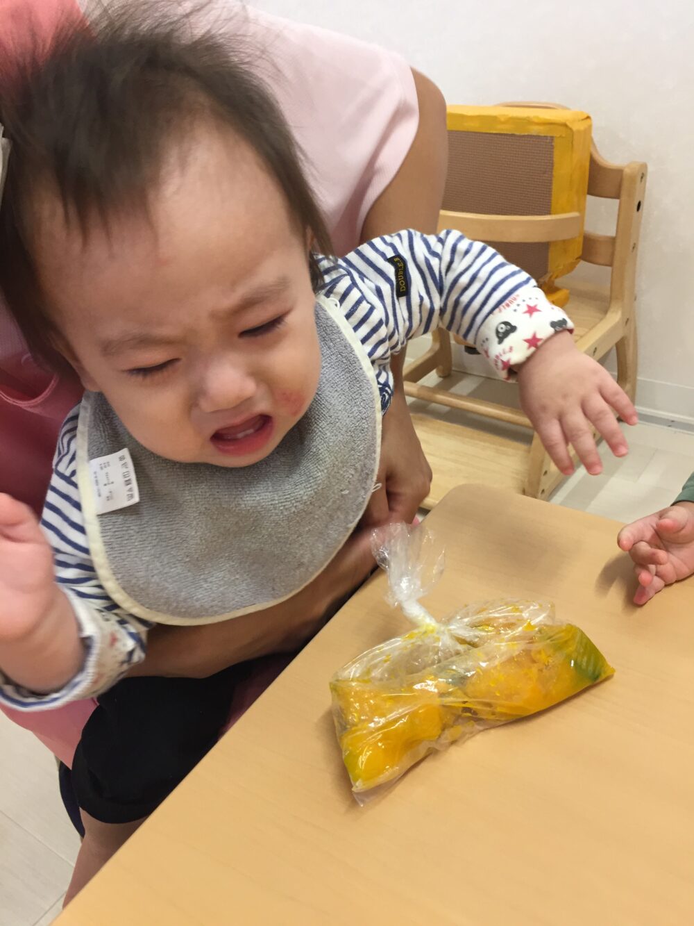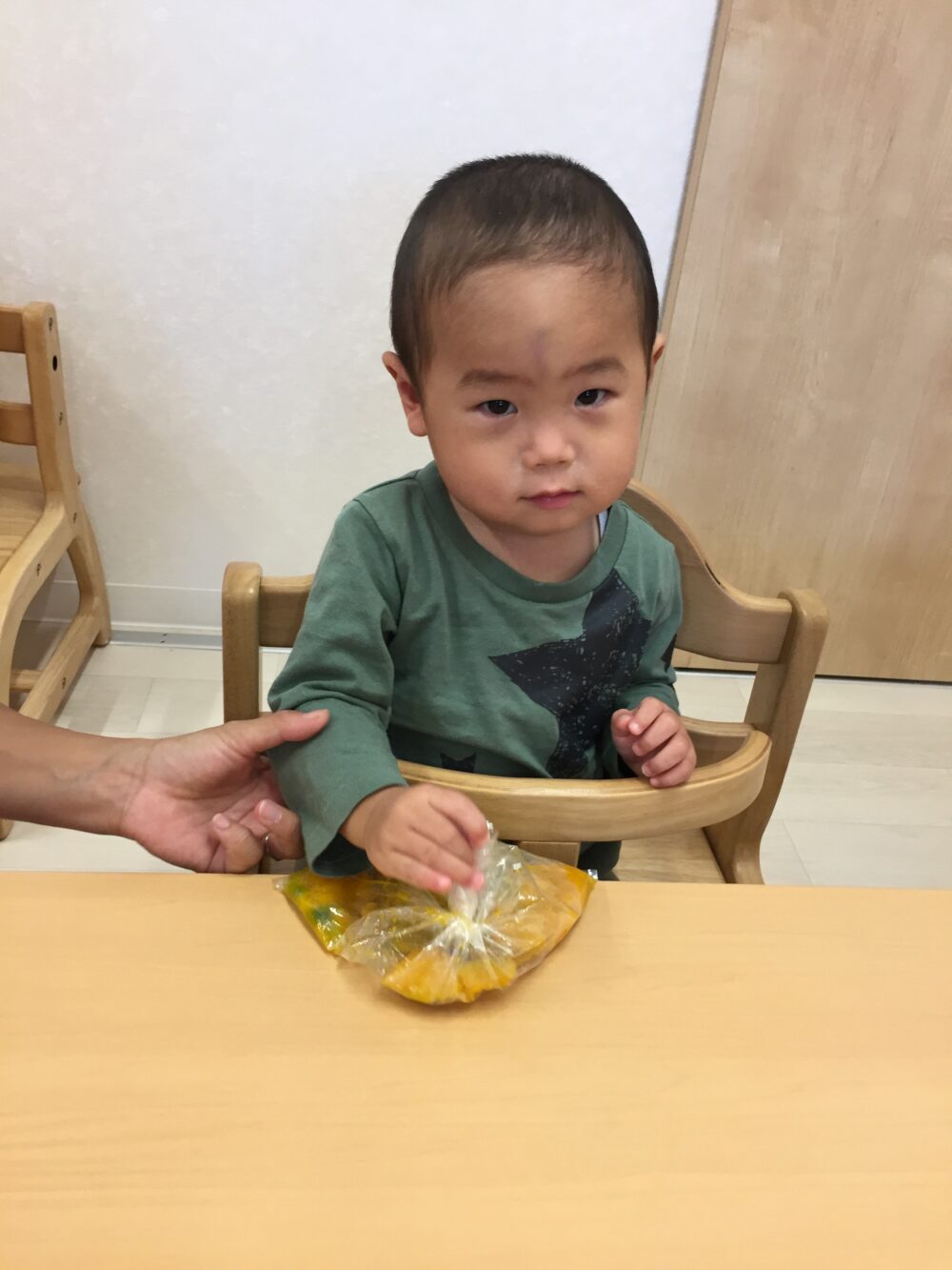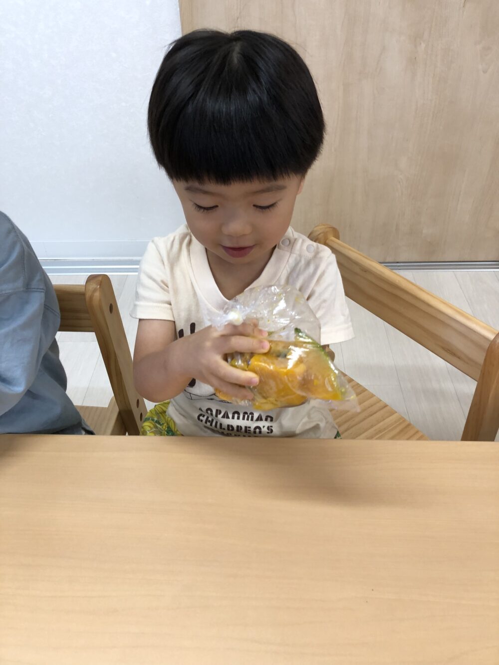朝元気よく登園してきた子から順にかぼちゃを触ってみました(^▽^)