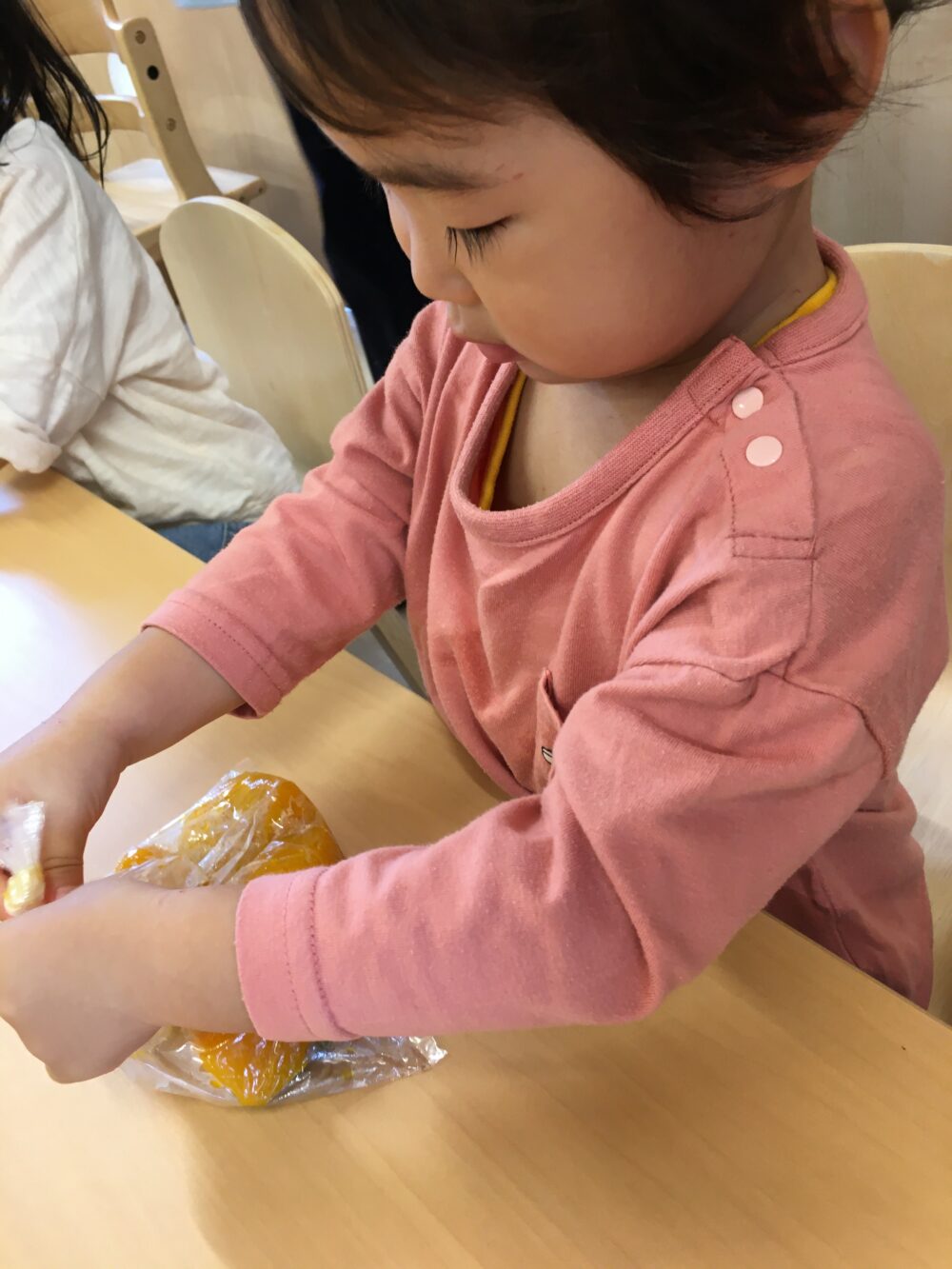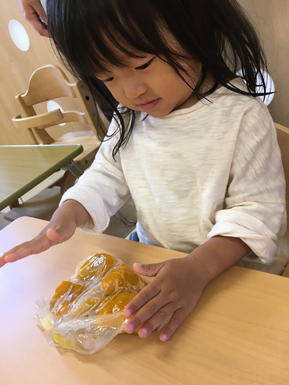 かぼちゃを柔らかく茹でてもらったあとは、みんなでモミモミ♪