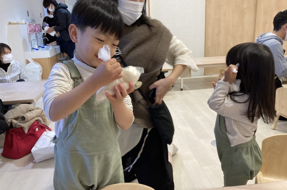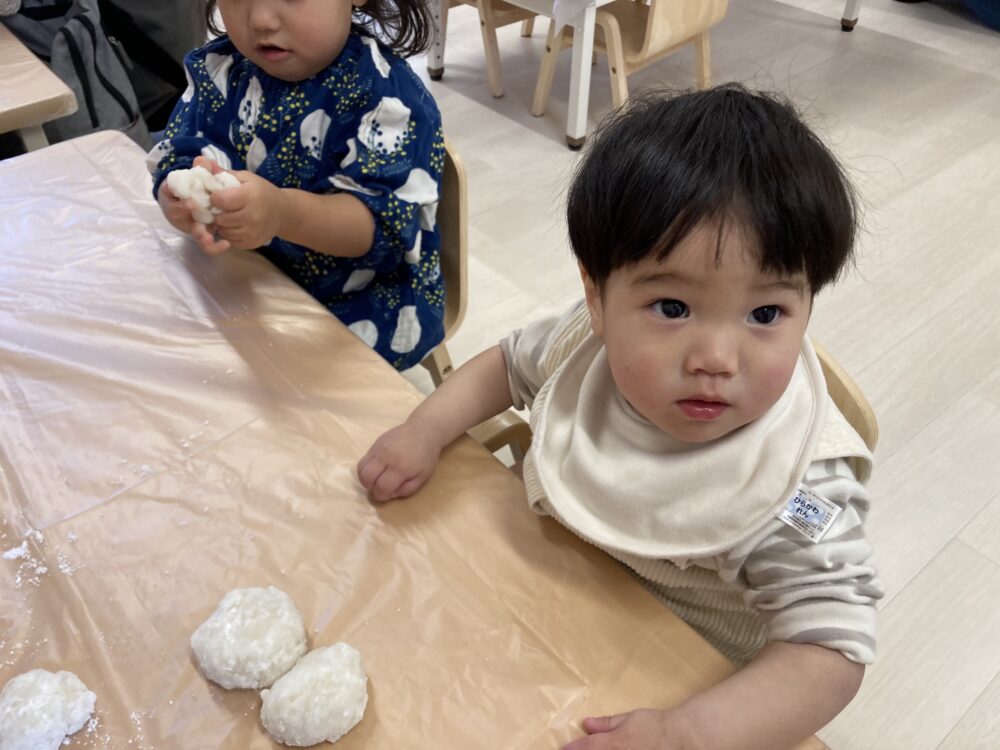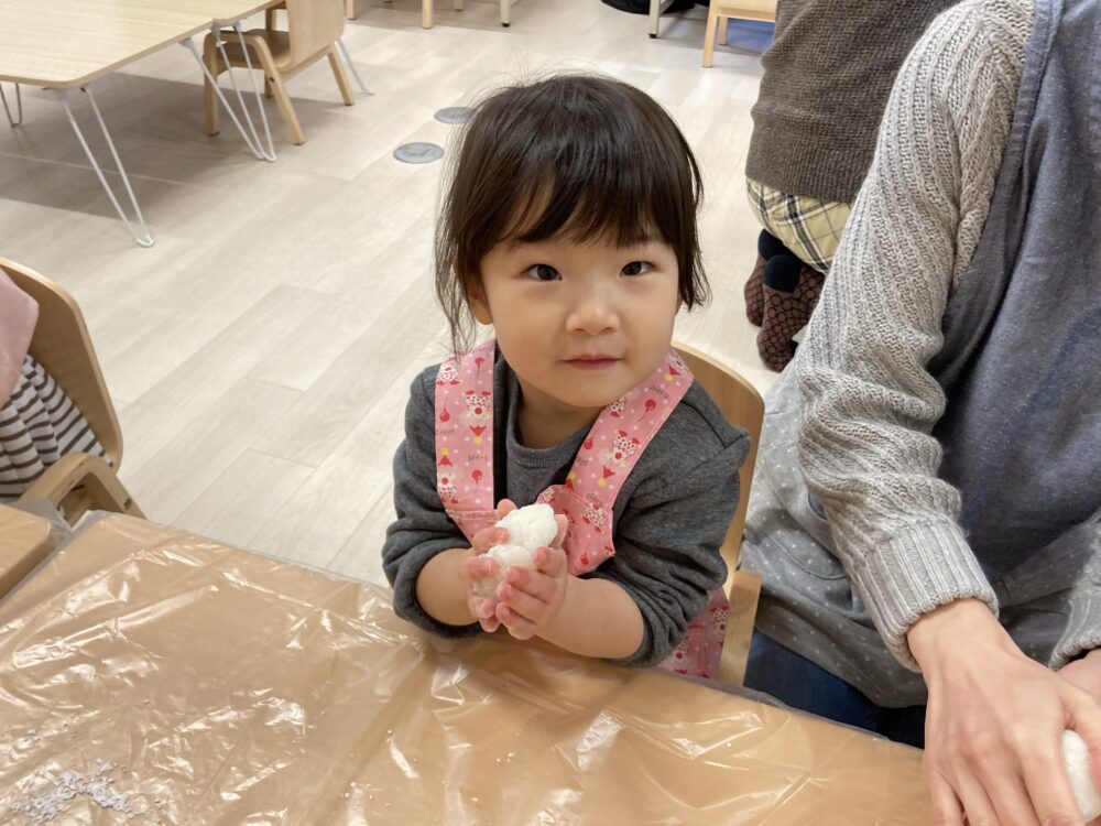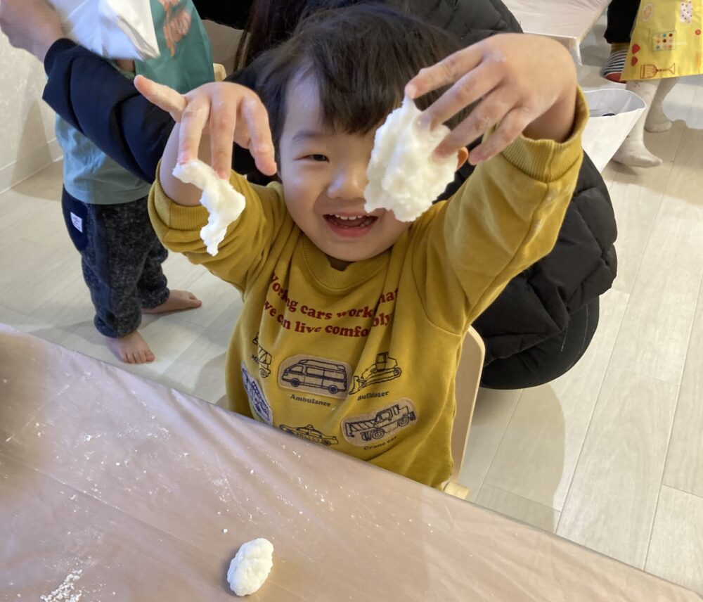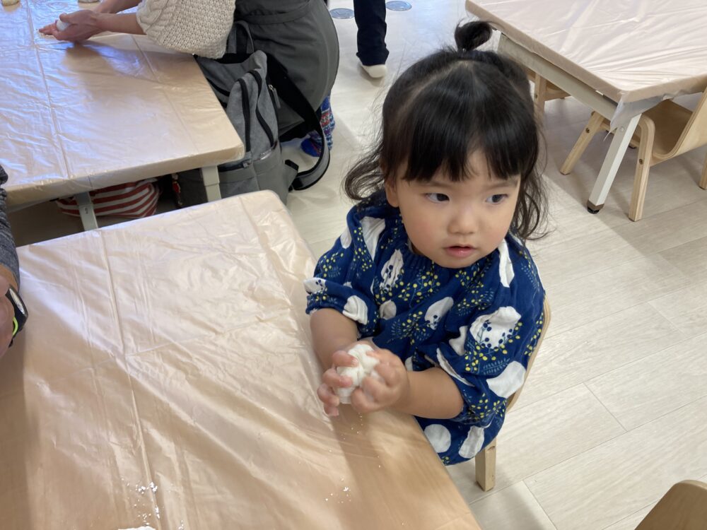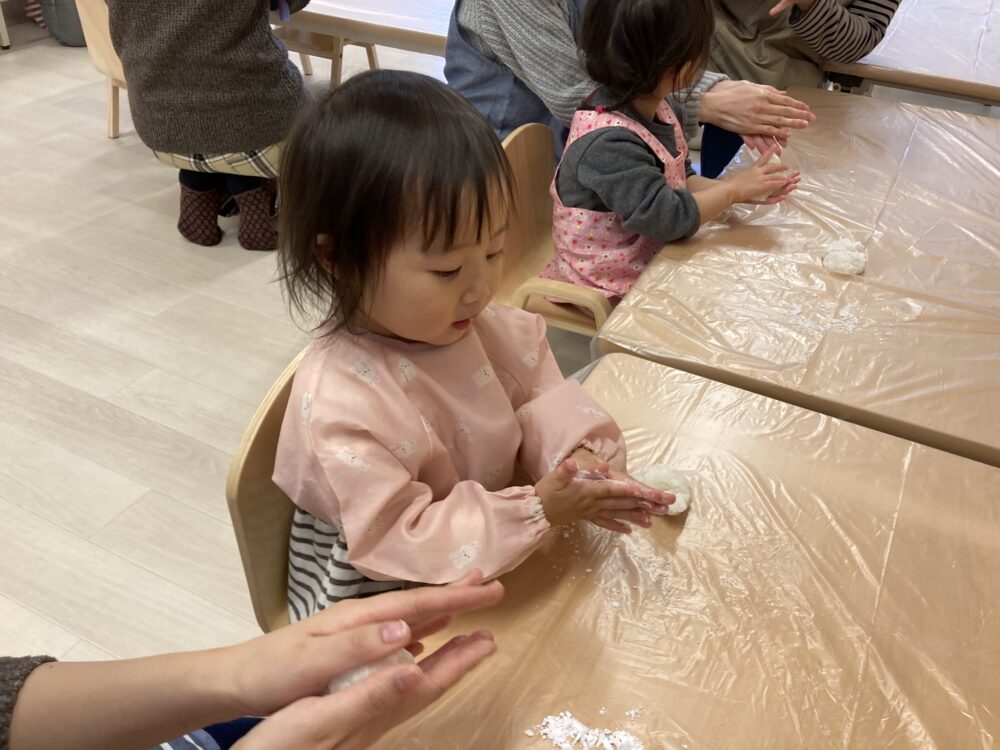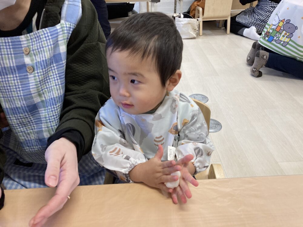 おうちの方と一緒に「ぺったん、ぺったん」