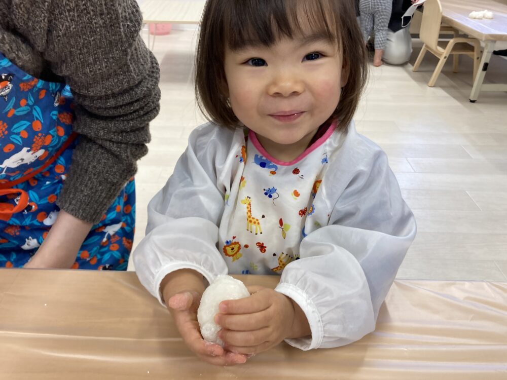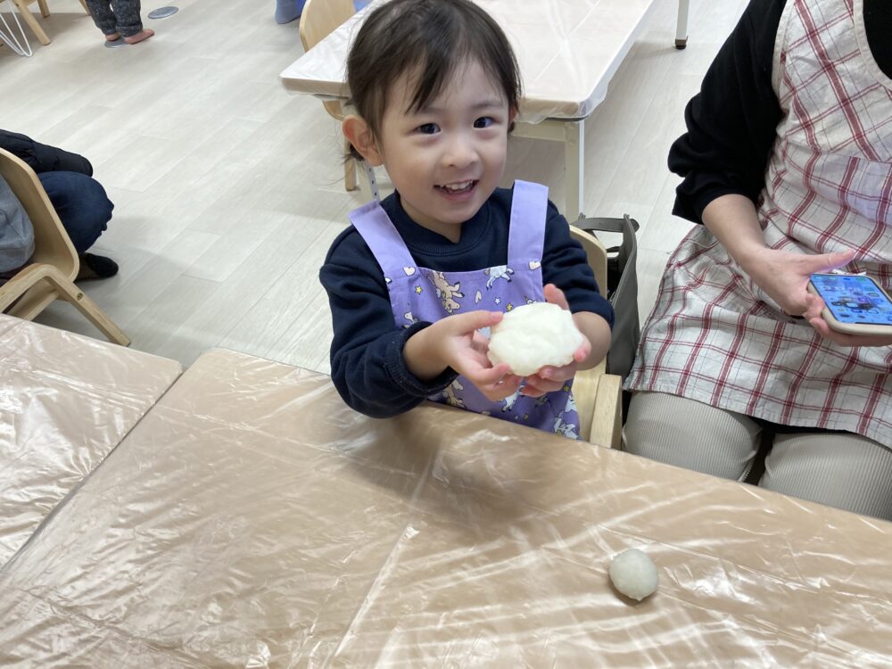 手洗いをしっかりと行って、自分たちでついたお餅をもらったら、準備万端☆