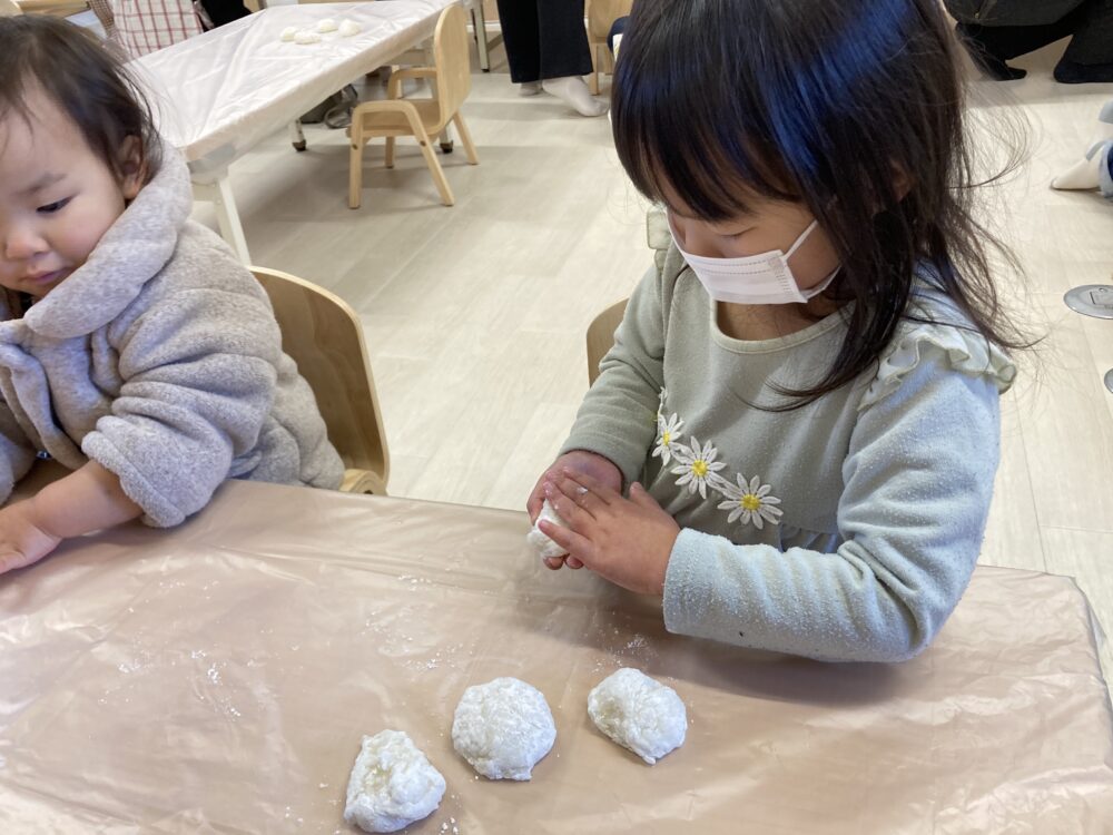 次はおもちを丸める作業です。