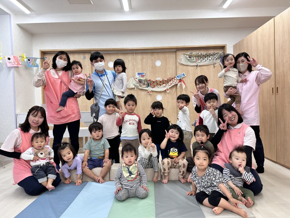 こいのぼりを飾って「こどもの日の会」をしました(^O^)