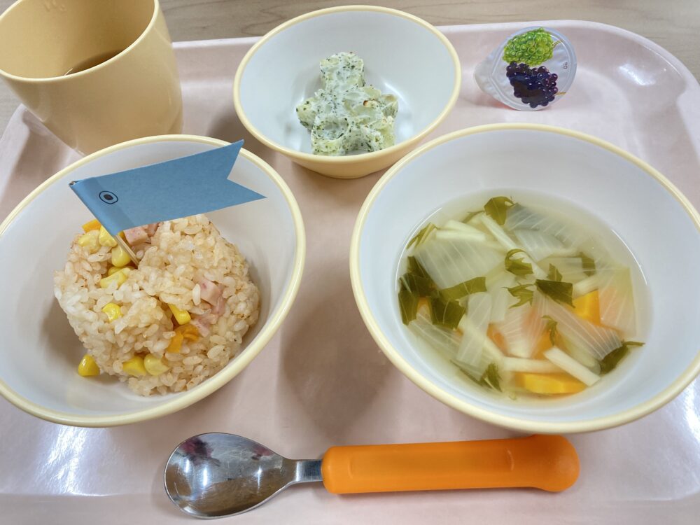 給食では鯉のぼりを見つけて大喜びの子ども達でした(^^)