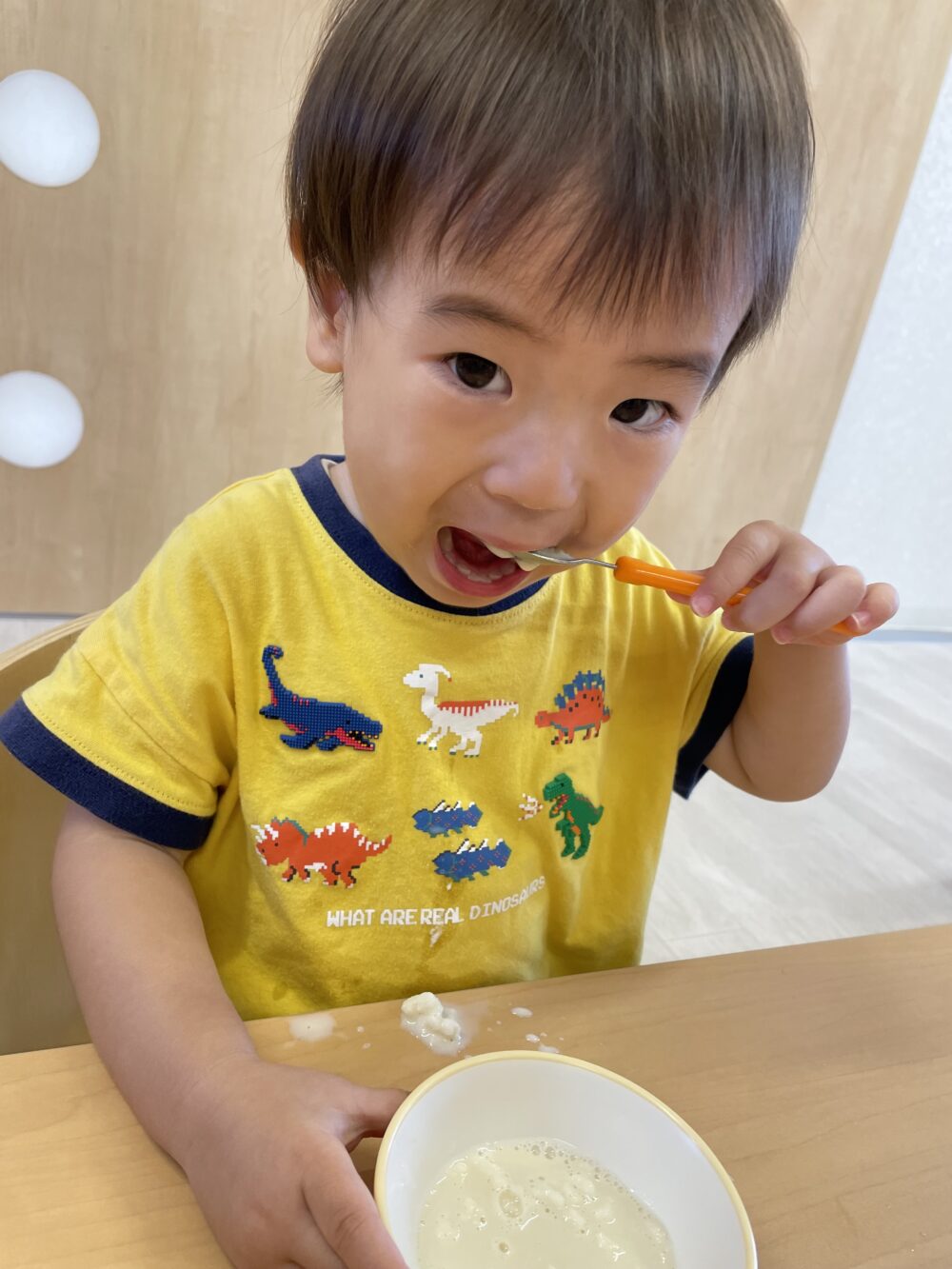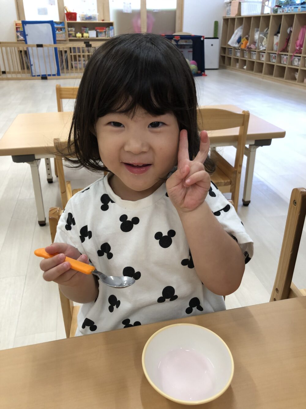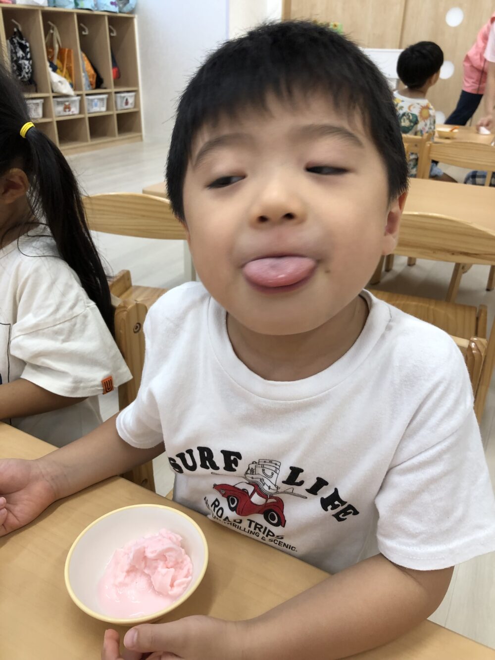そして、、できあがり♡「すごいね!」「ほんもののアイスだ…」と驚く子どもたち。最初はただの牛乳でしたが、みんなで頑張ってこんなに素敵なアイスを作ることができました!👏👏