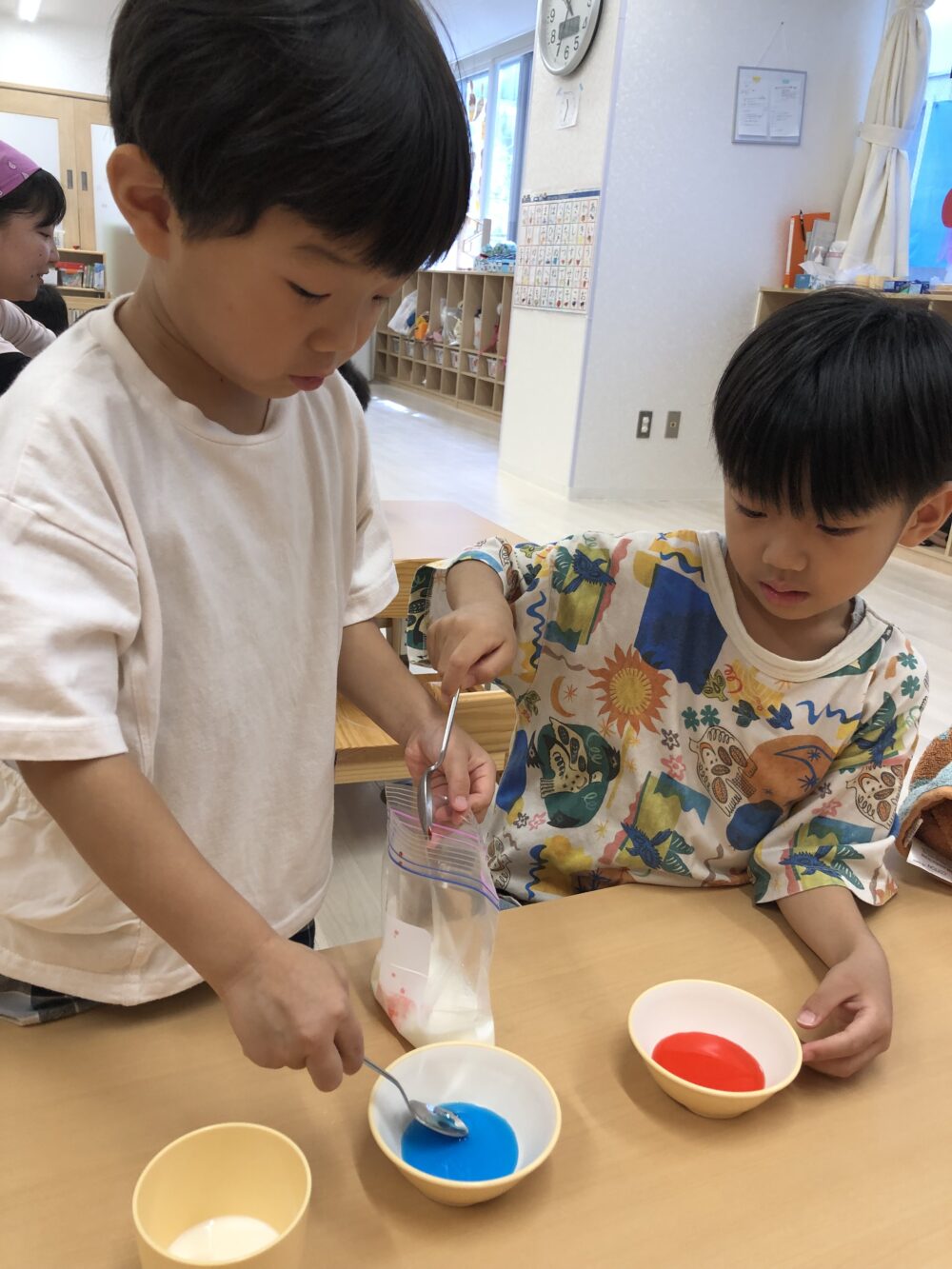 大きいクラスのお友だちは味変にもチャレンジ…♪好きな味のかき氷のシロップを一緒にシェイクして美味しく食べました☆