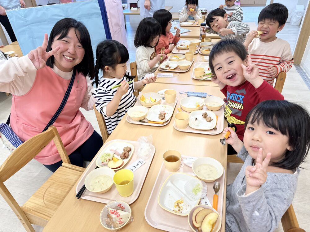 美味しそうなメニューを前に、大興奮の子どもたち!「おいしそう!楽しみ!!」といった子や、「作ってくれてありがとう!」と、給食先生に伝える子もたくさんでした◎