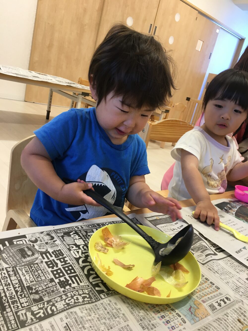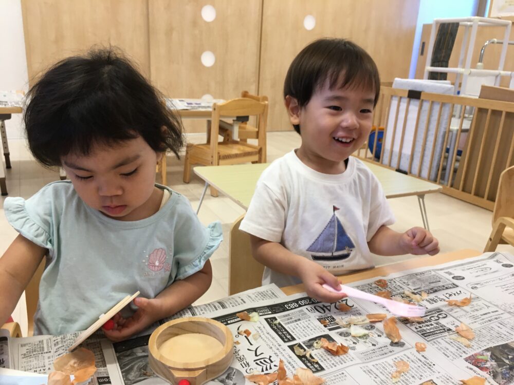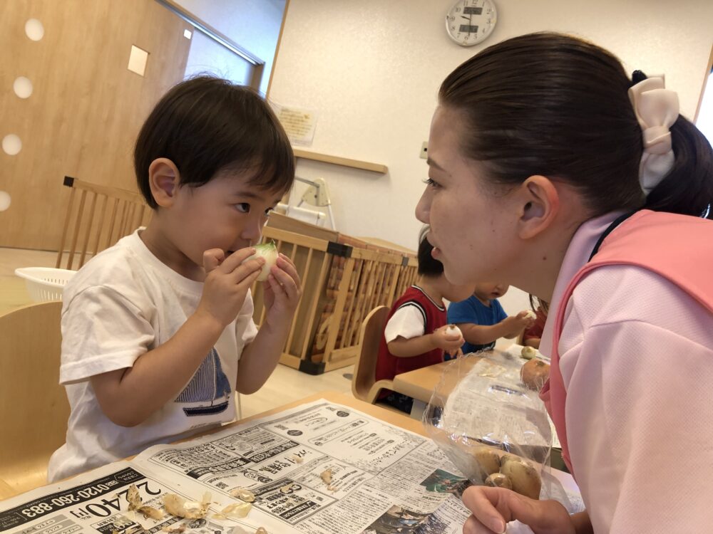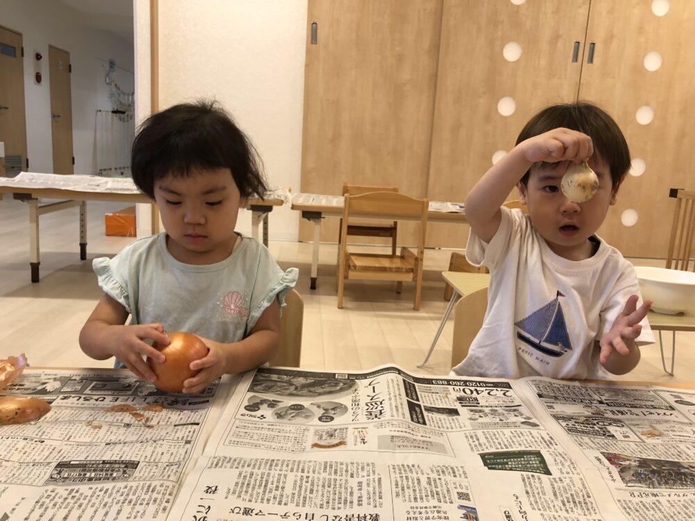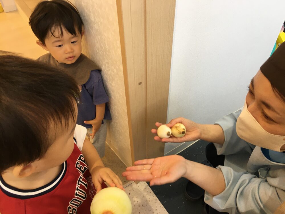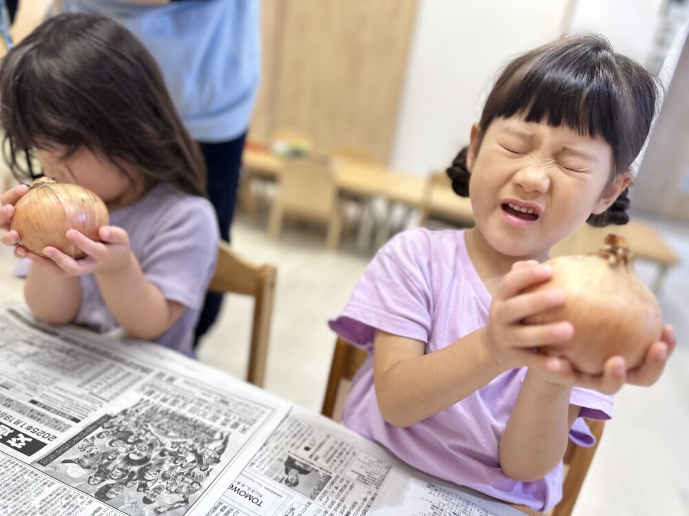 そらぐみ、ひかりぐみ、にじぐみは大きなたまねぎに挑戦しました。